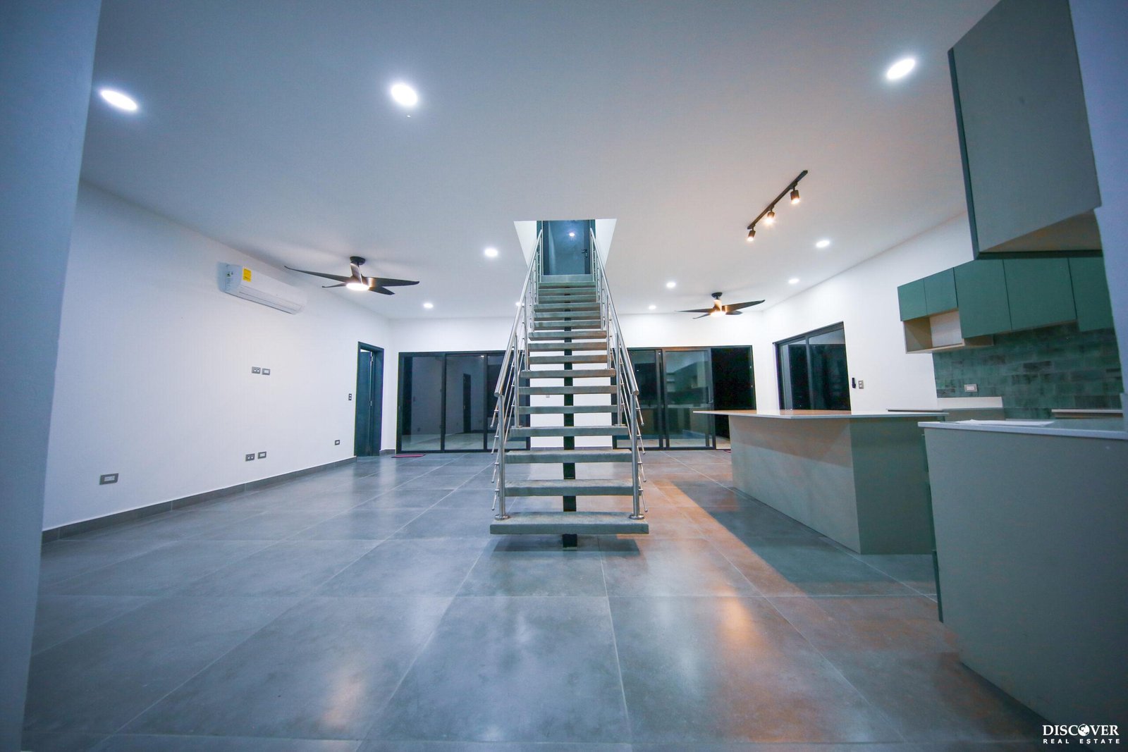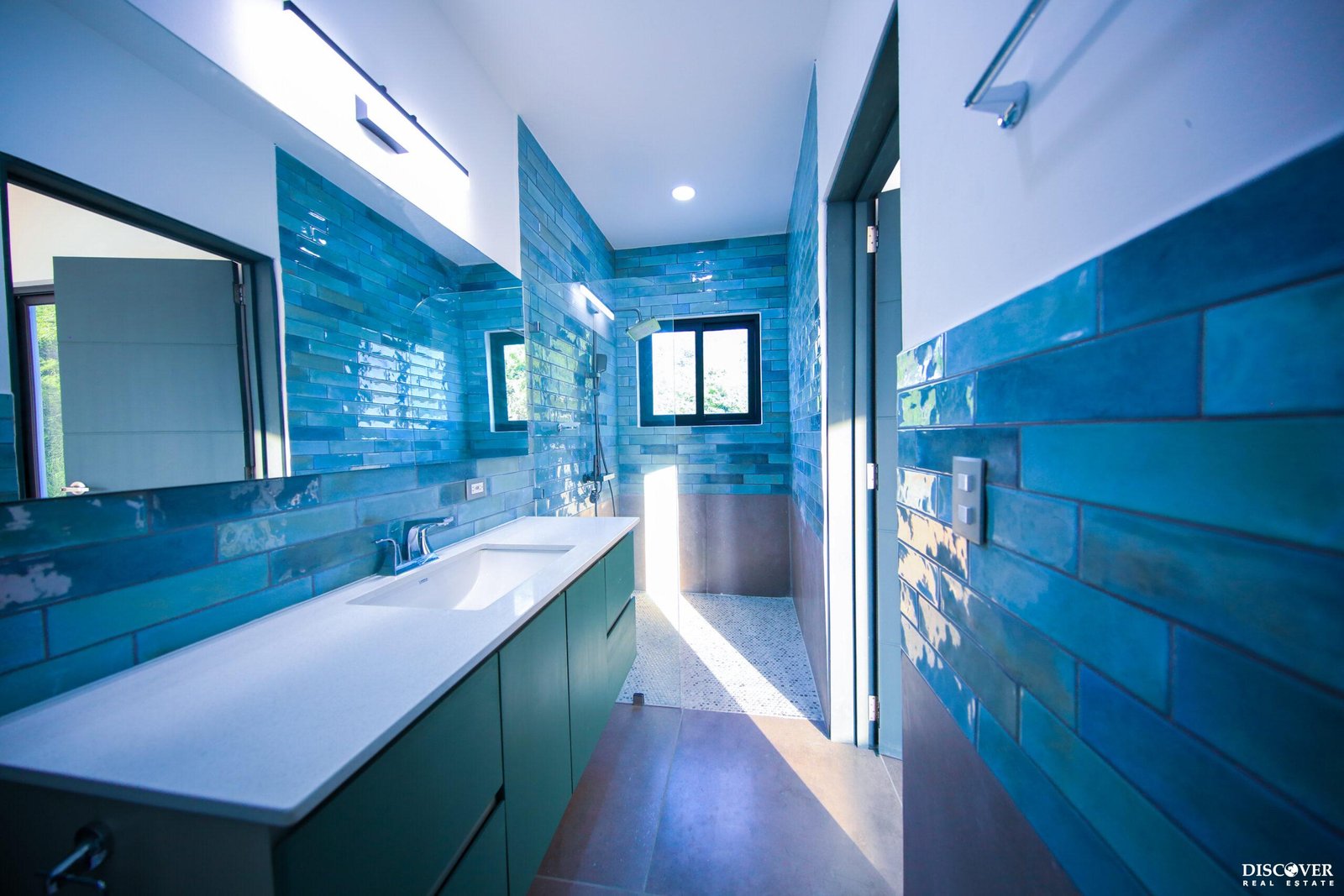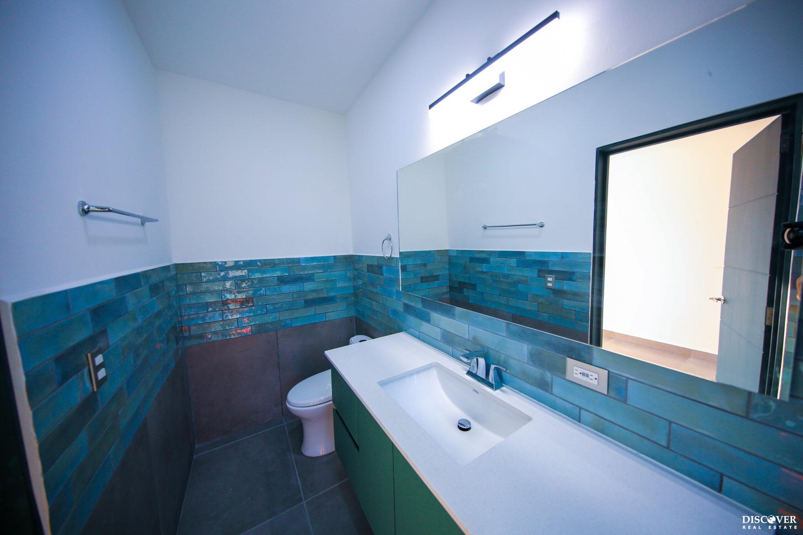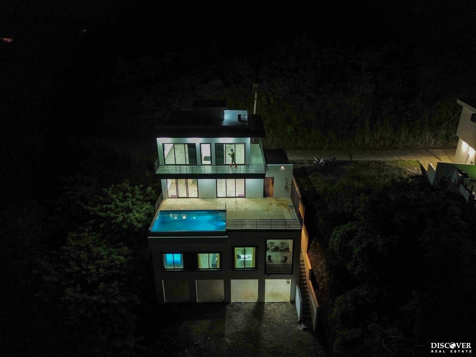 7A Brisas Ocean View Home has 2 master bedrooms on the top floor with ensuite bathrooms and space to add an additional bedroom beside the pool. All the plumbing is in place for a bathroom if you want an additional bedroom beside the pool area. The main floor is an open floor plan with half a bath, a laundry room, and air conditioning along with on demand hot water. The very stylish kitchen has granite countertops, tile backsplash, and very attractive cabinets. Also on the main level is a lockable storage area beside the carport, lockable pool equipment room, and LED exterior lighting that makes the house very attractive at night.
