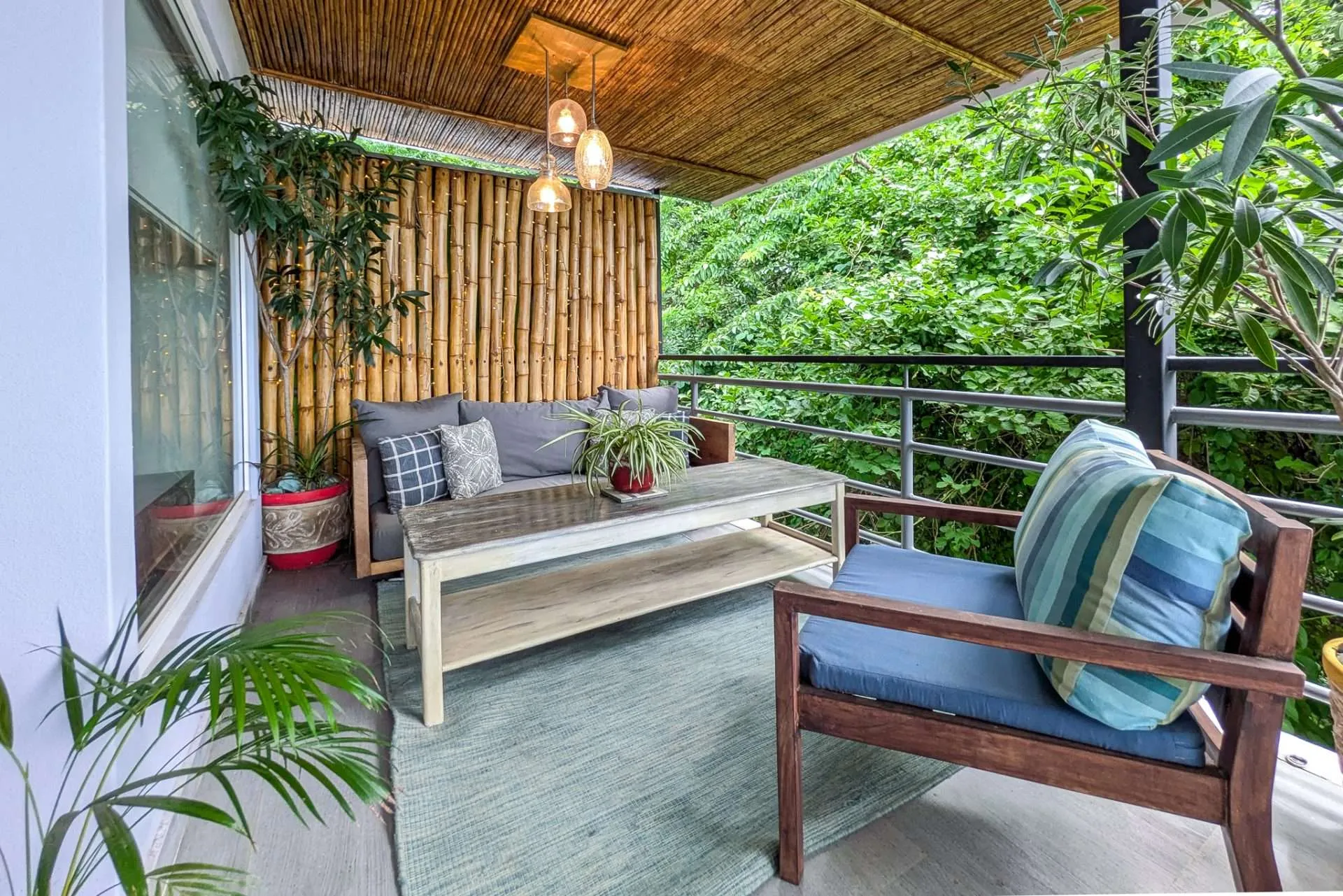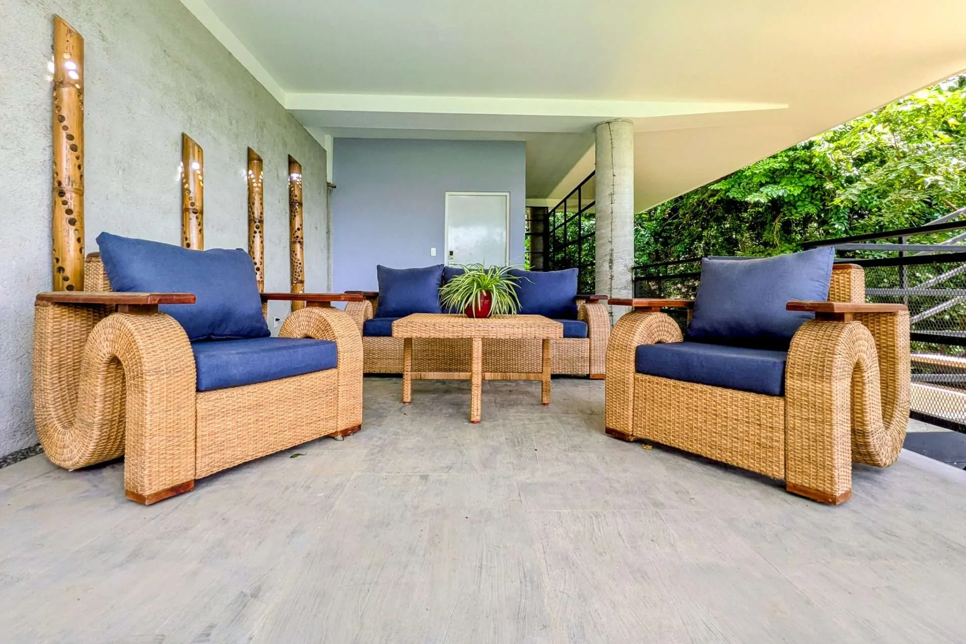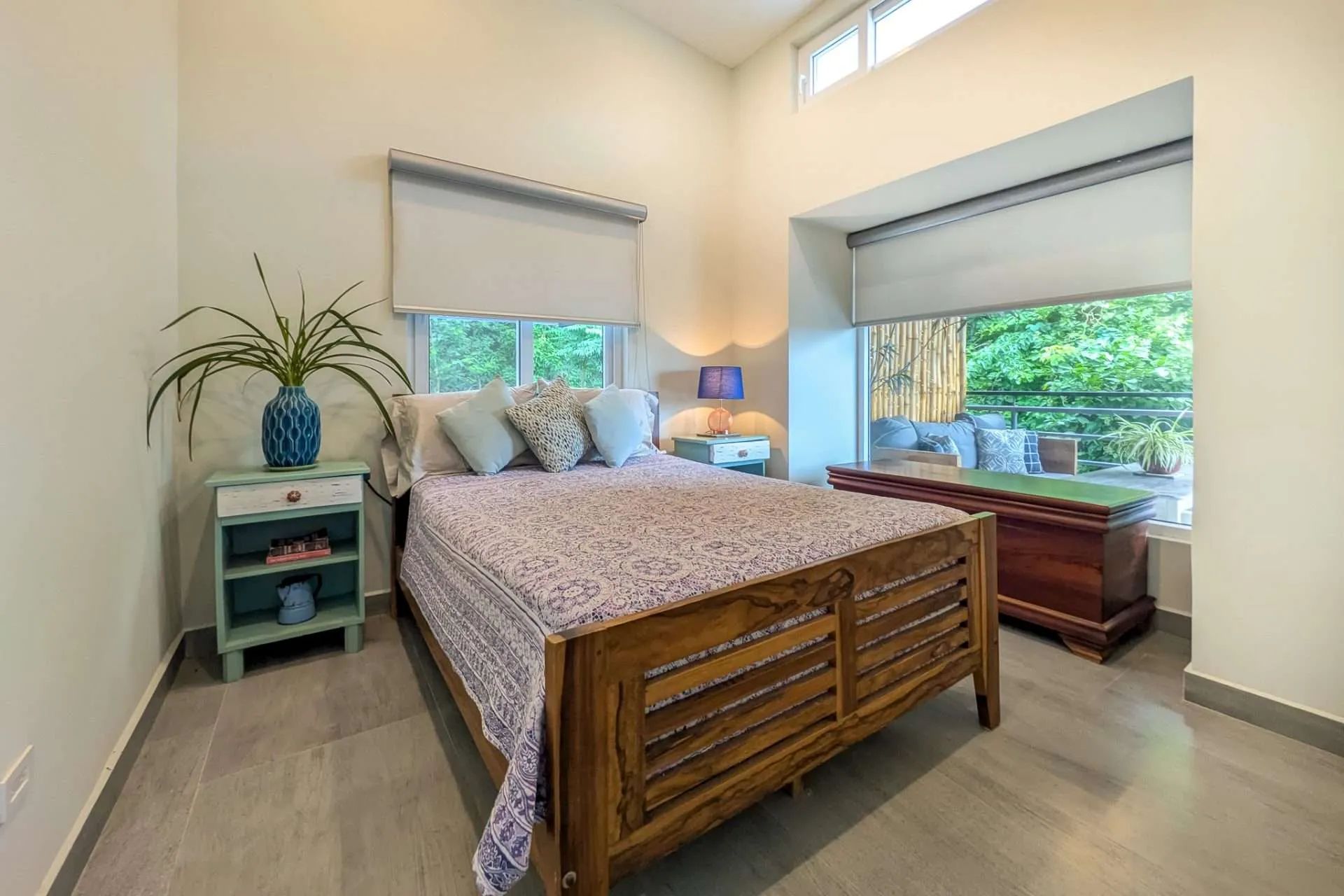Sliding doors open the living space to an expansive covered deck. It’s a natural extension of the home—perfect for morning coffee, casual meals with friends, or a quiet afternoon hammock break while monkeys swing through the trees. At sunset, the outdoor space becomes your front-row seat to stunning colorful sunsets.