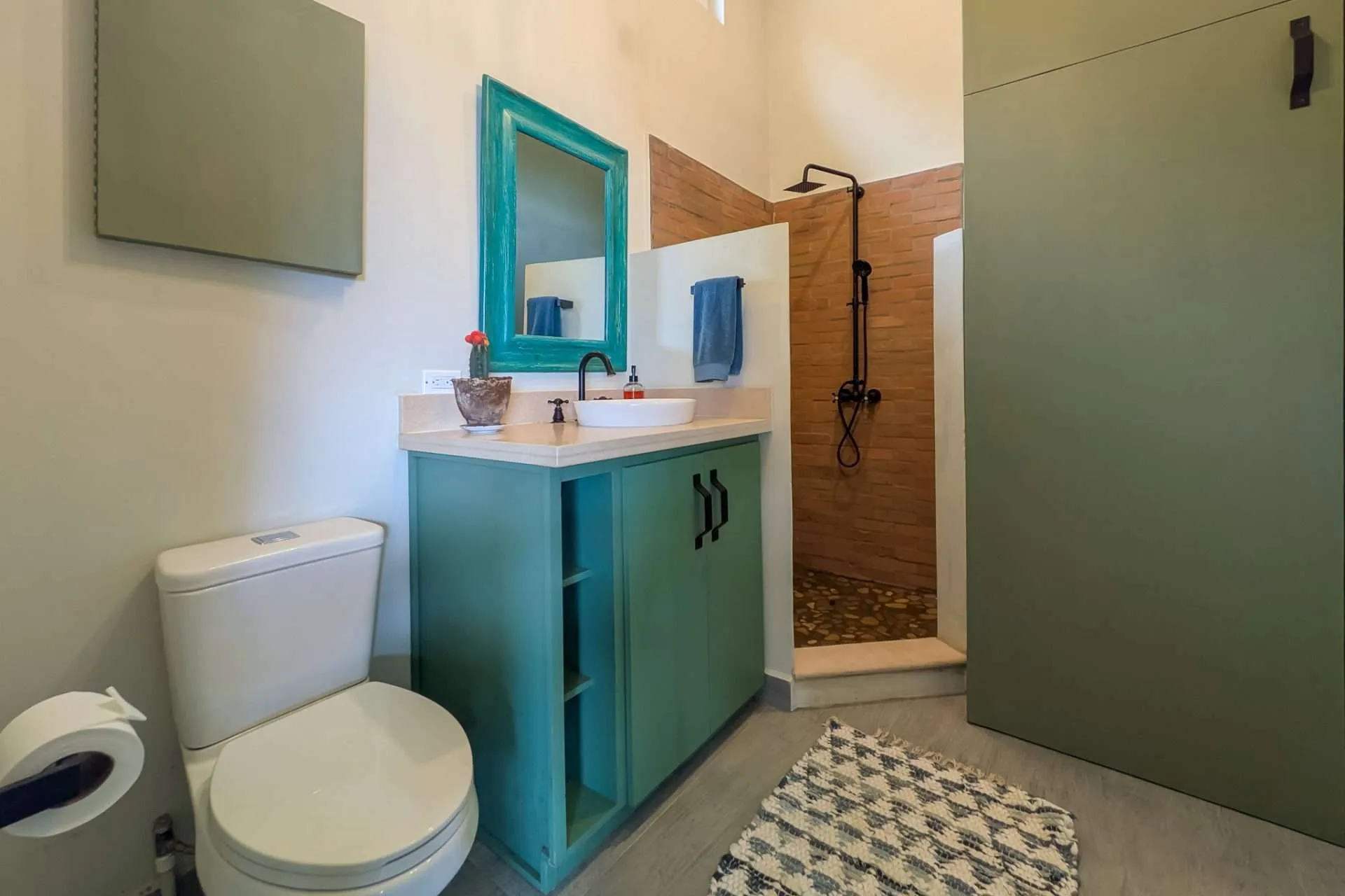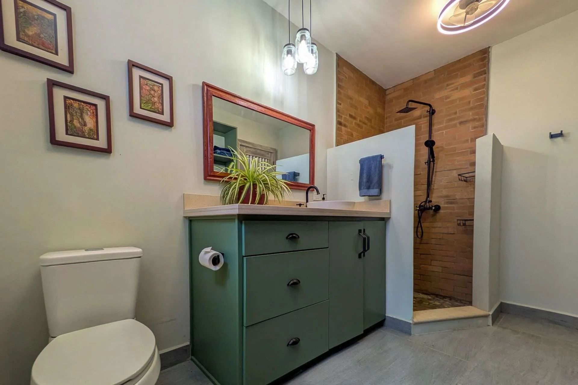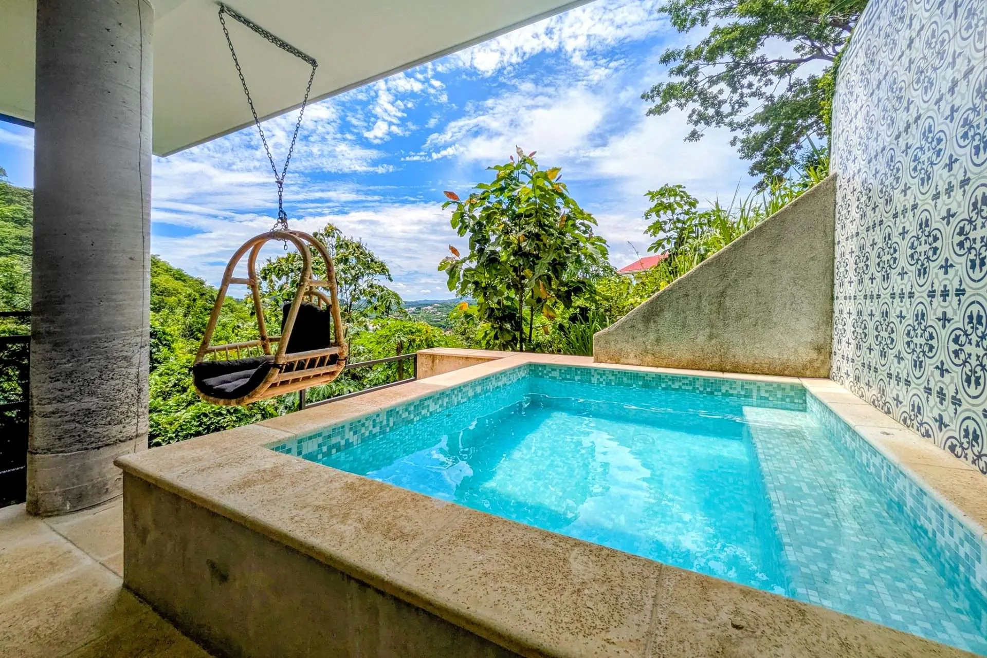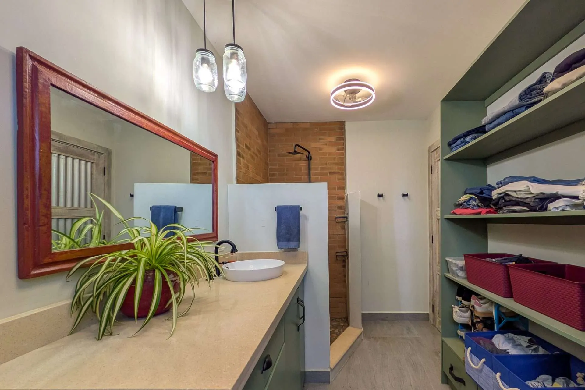 Sliding doors open the living space to an expansive covered deck. It’s a natural extension of the home—perfect for morning coffee, casual meals with friends, or a quiet afternoon hammock break while monkeys swing through the trees. At sunset, the outdoor space becomes your front-row seat to stunning colorful sunsets.
